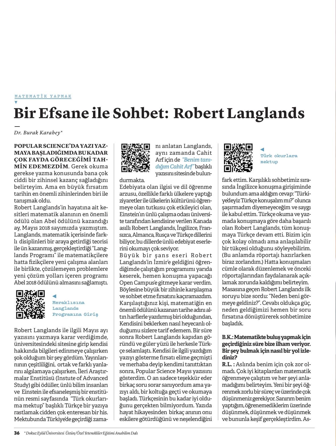 BİR EFSANE İLE SOHBET: ROBERT LANGLANDS