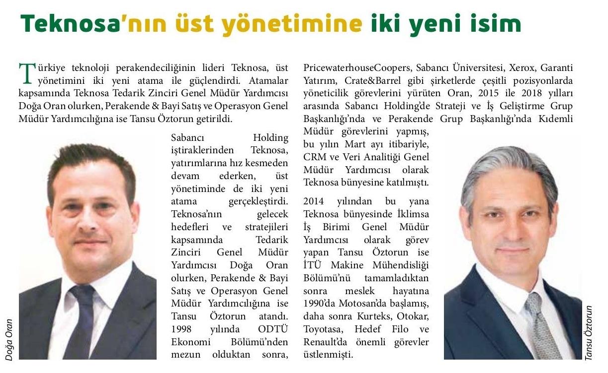 TEKNOSA'NIN ÜST YÖNETİMİNE İKİ YENİ İSİM