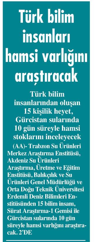 TÜRK BİLİM İNSANLARI HAMSİ VARLIĞINI ARAŞTIRACAK