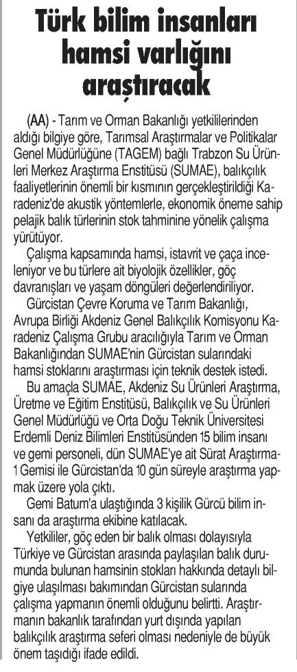 TÜRK BİLİM İNSANLARI HAMSİ VARLIĞINI ARAŞTIRACAK [Devam - 1]