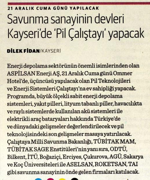 SAVUNMA SANAYİNİN DEVLERİ KAYSERİ DE PİL ÇALIŞTAYI YAPACAK