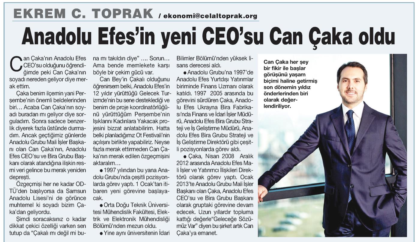 ANADOLU EFES'İN YENİ CEO'SU CAN ÇAKA OLDU