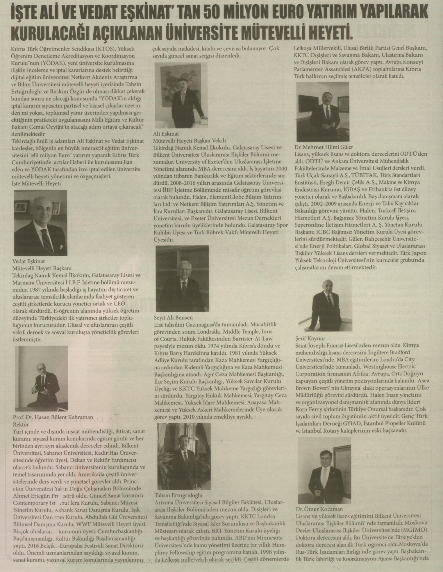 İŞTE ALI VE VEDAT EŞKİNAT' TAN 50 MİLYON EURO YATIRIM YAPILARAK KURULACAĞI AÇIKLANAN ÜNİVERSİTE MÜTEVELLİ HEYETİ