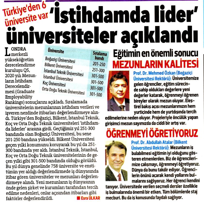 'İSTİHDAMDA LİDER' ÜNİVERSİTELER AÇIKLANDI