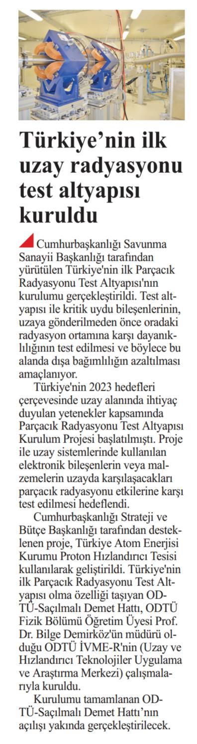 TÜRKİYE'NİN İLK UZAY RADYASYONU TEST ALTYAPISI KURULDU