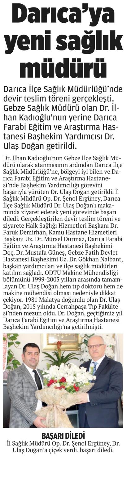 DARICA'YA YENİ SAĞLIK MÜDÜRÜ