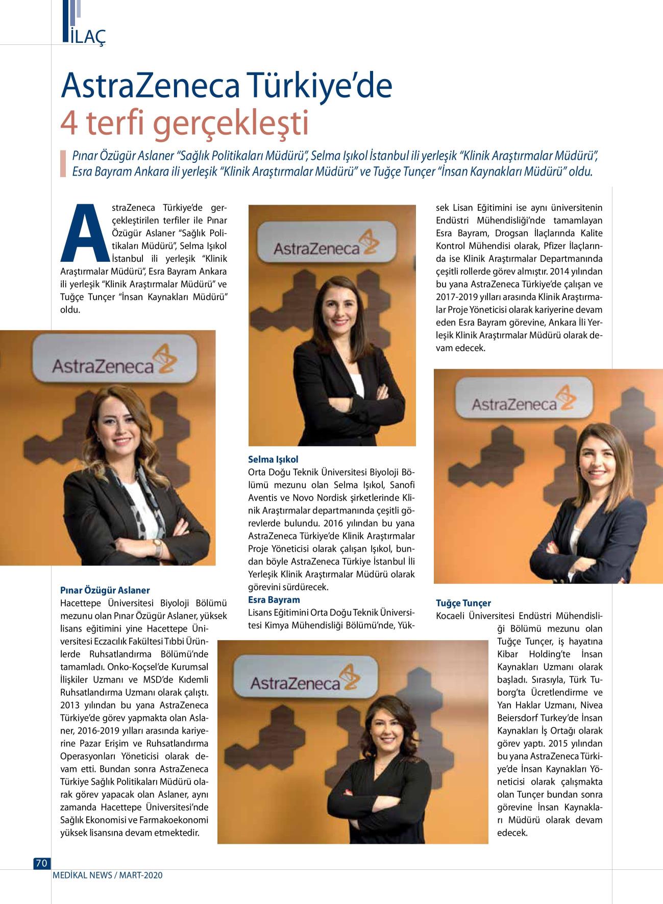 ASTRAZENECA TÜRKİYE'DE 4 TERFİ GERÇEKLEŞTİ