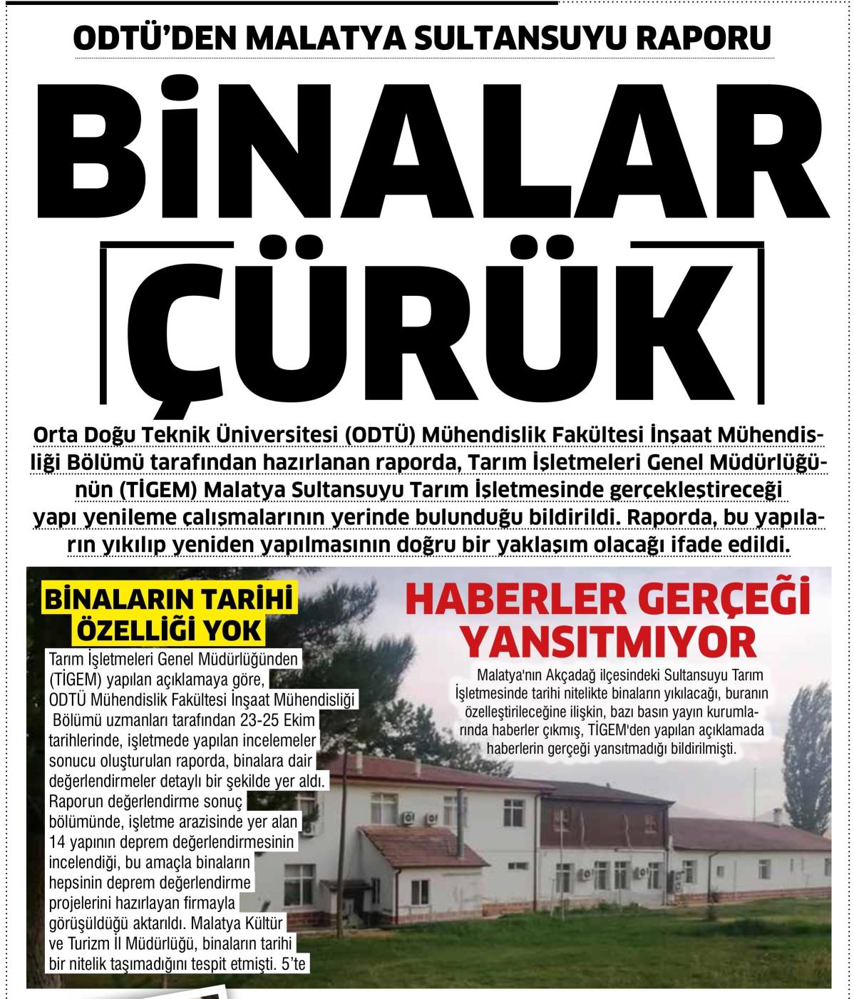 ODTÜ'DEN MALATYA SULTANSUYU RAPORU