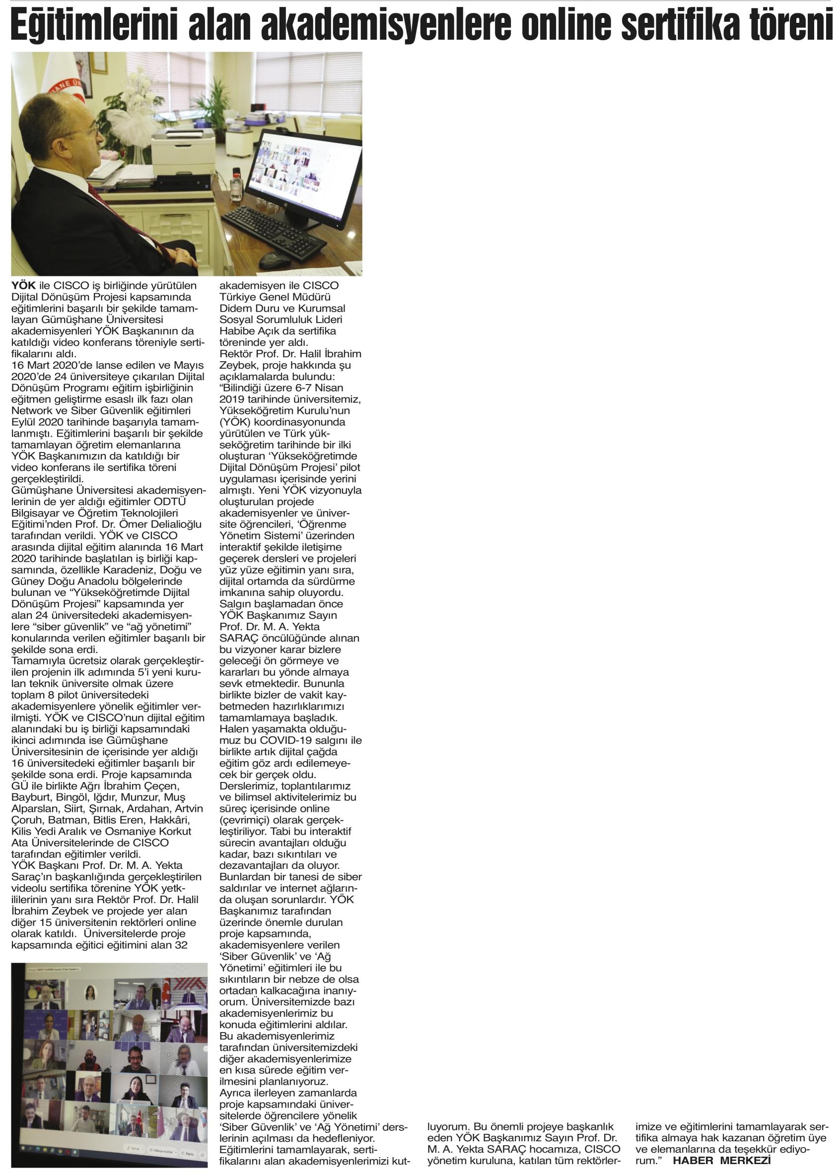 EĞİTİMLERİNİ ALAN AKADEMİSYENLERE ONLINE SERTİFİKA TÖRENİ