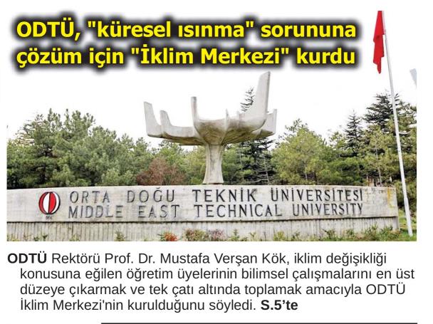 ODTÜ, "KÜRESEL ISINMA" SORUNUNA ÇÖZÜM İÇİN "İKLİM MERKEZİ" KURDU