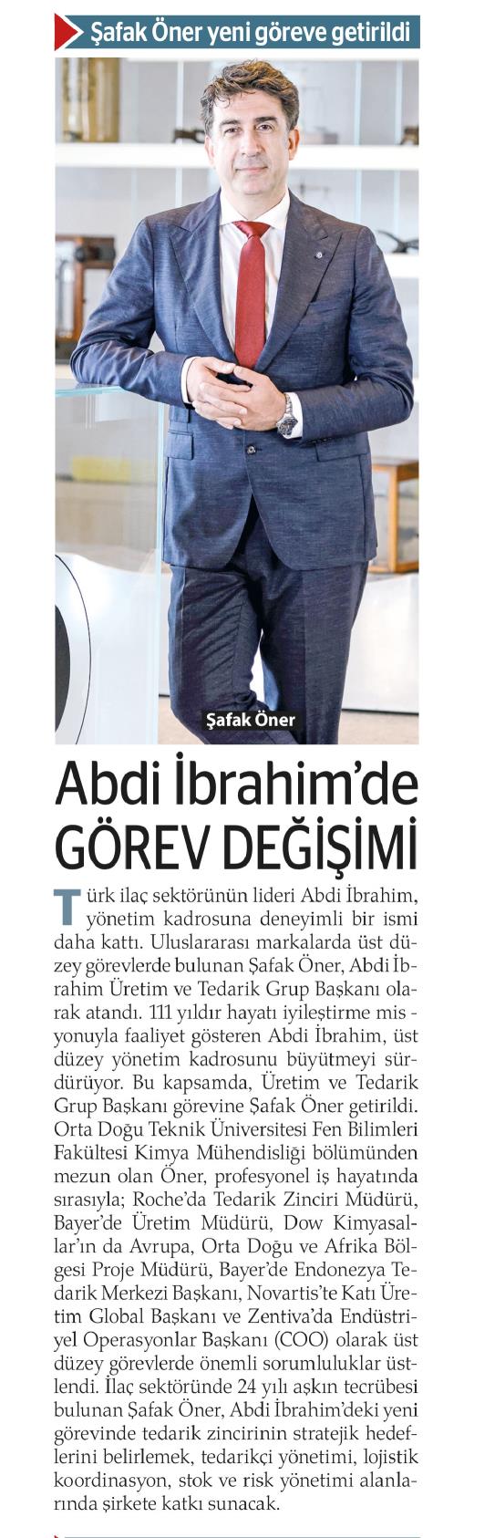 ABDİ İBRAHİM'DE GÖREV DEĞİŞİMİ
