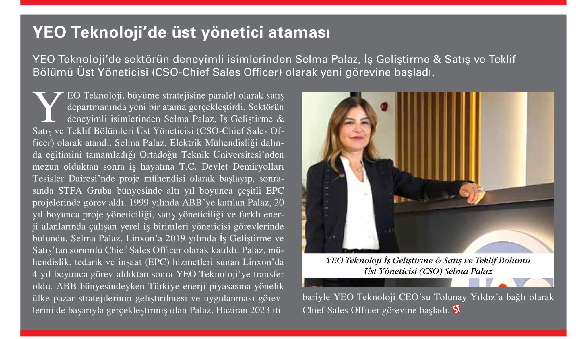 YEO TEKNOLOJİ'DE ÜST YÖNETİCİ ATAMASI