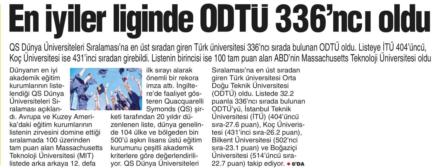 EN İYİLER LİGİNDE ODTÜ 336'NCI OLDU
