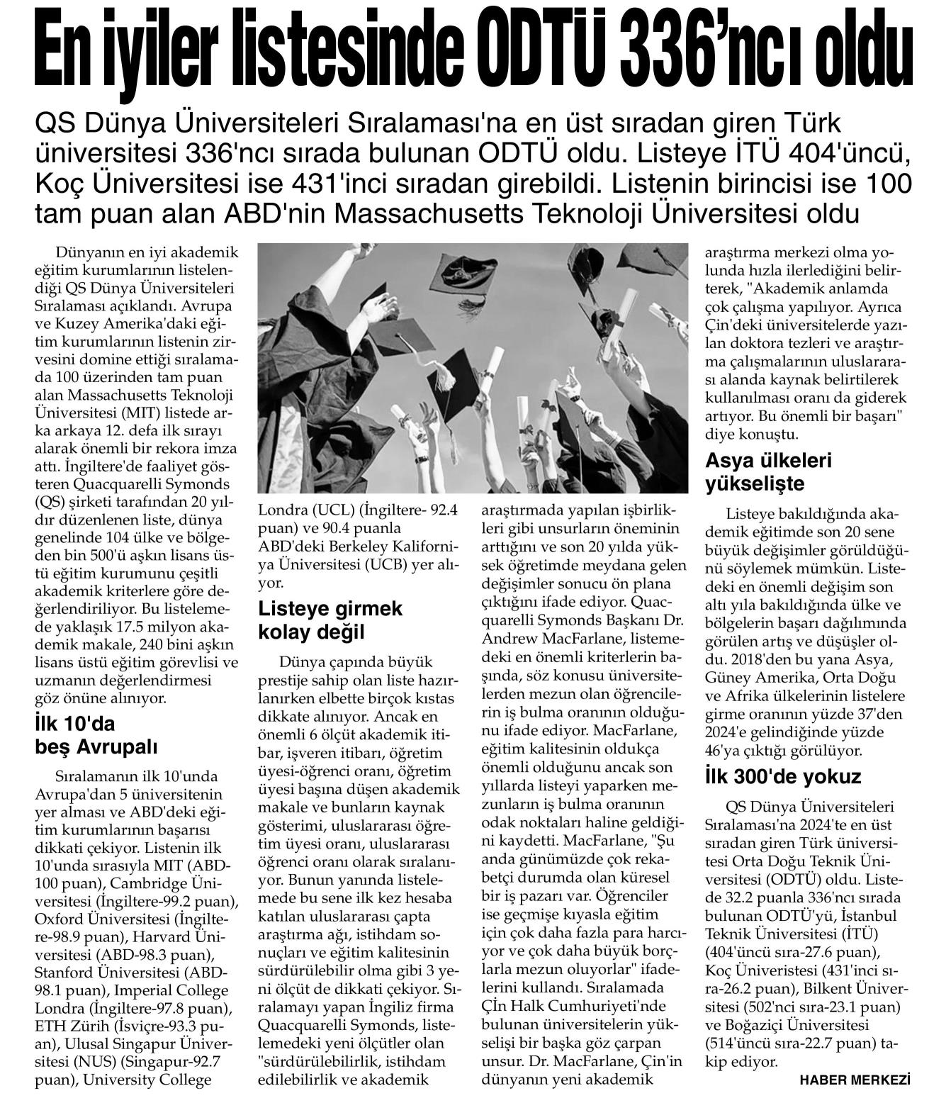 EN İYİLER LİGİNDE ODTÜ 336'NCI OLDU [Devam - 1]