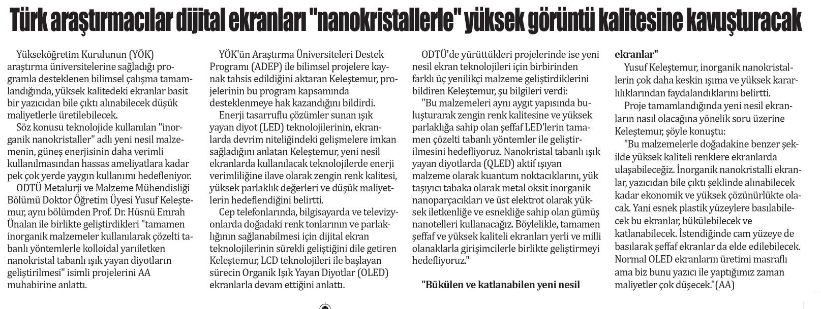 TÜRK ARAŞTIRMACILAR DİJİTAL EKRANLARI "NANOKRİSTALLERLE" YÜKSEK GÖRÜNTÜ KALİTESİNE KAVUŞTURACAK
