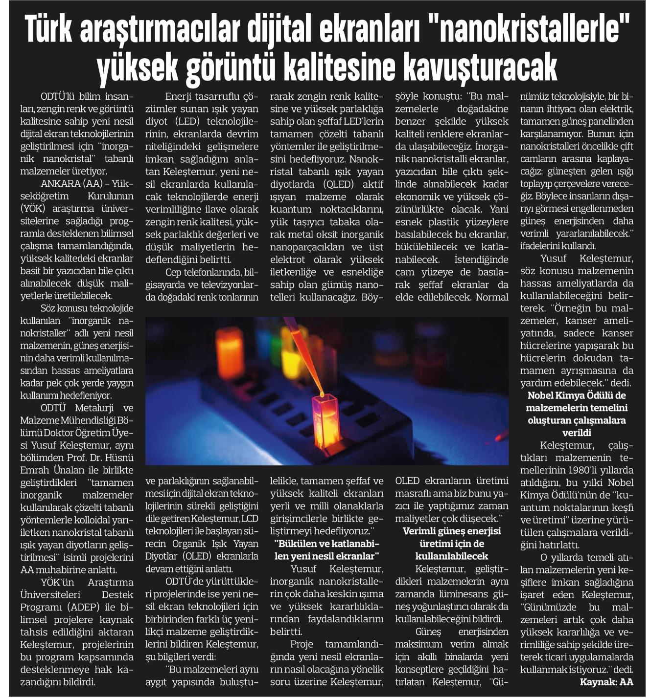 TÜRK ARAŞTIRMACILAR DİJİTAL EKRANLARI "NANOKRİSTALLERLE" YÜKSEK GÖRÜNTÜ KALİTESİNE KAVUŞTURACAK