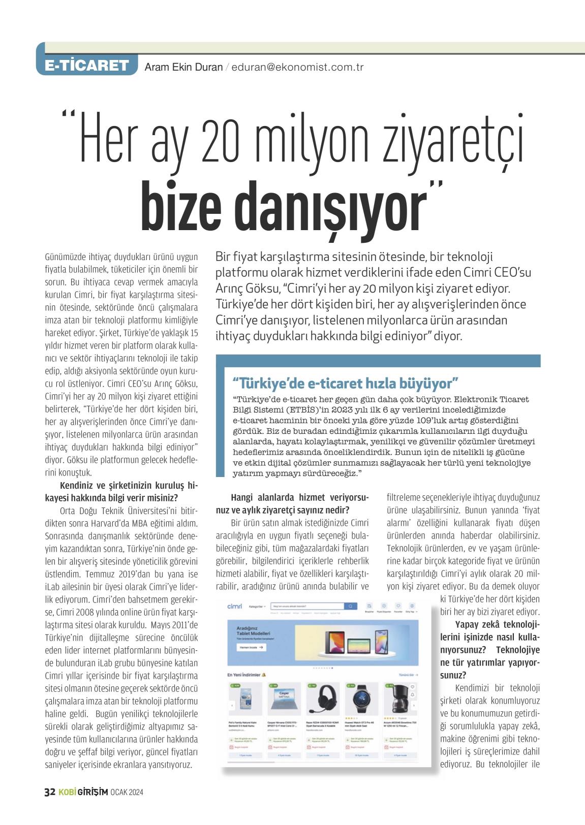 "HER AY 20 MİLYON ZİYARETÇİ BİZE DANIŞIYOR"