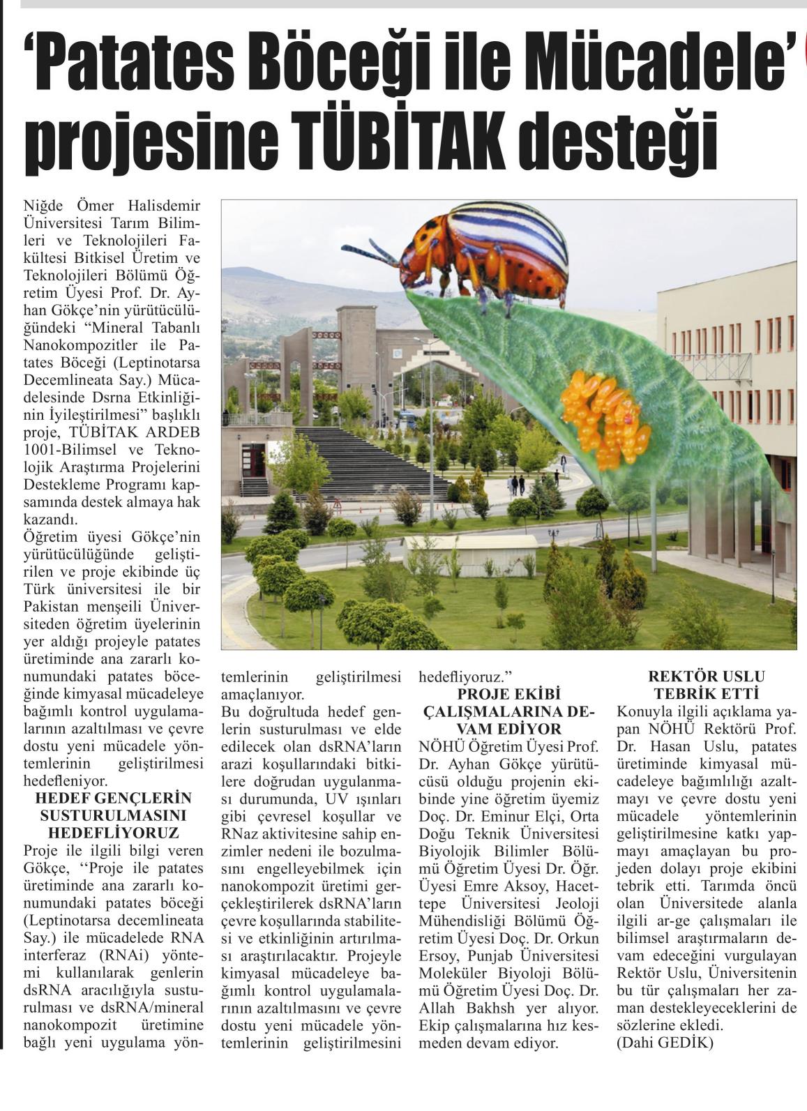 PATATES BÖCEĞİ İLE MÜCADELE PROJESİNE TÜBİTAK DESTEĞİ