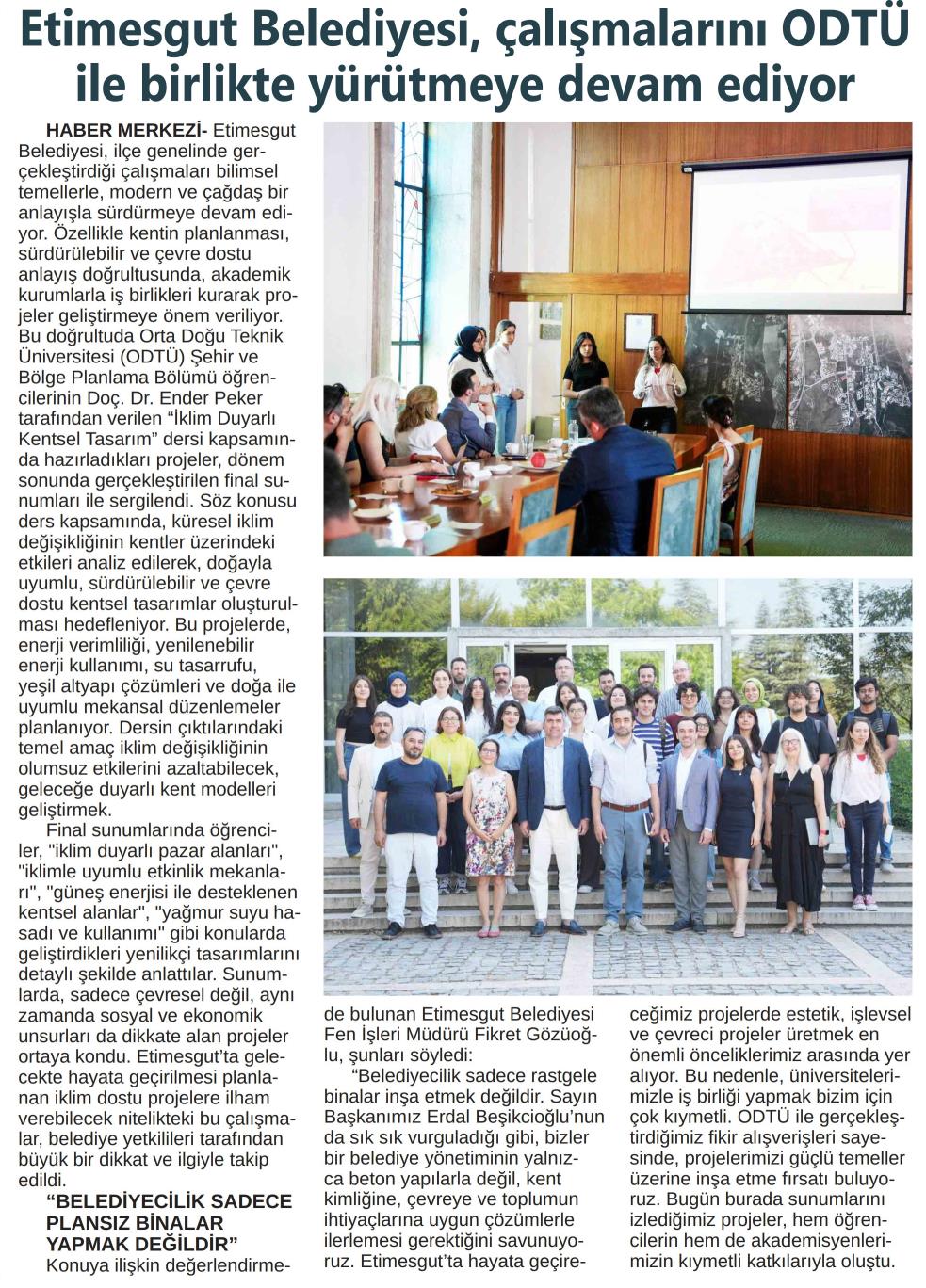ETİMESGUT BELEDİYESİ, ÇALIŞMALARINI ODTÜ İLE BİRLİKTE YÜRÜTMEYE DEVAM EDİYOR