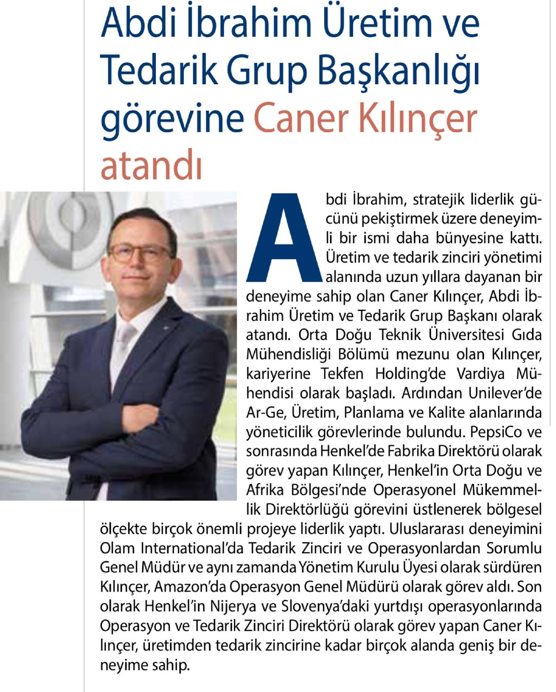 ABDİ İBRAHİM ÜRETİM VE TEDARİK GRUP BAŞKANLIĞI GÖREVİNE CANER KILINÇER ATANDI