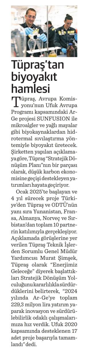 TÜPRAŞ'TAN BİYOYAKIT HAMLESİ