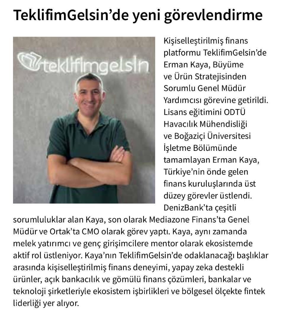 TEKLİFİMGELSİN'DE YENİ GÖREVLENDİRME