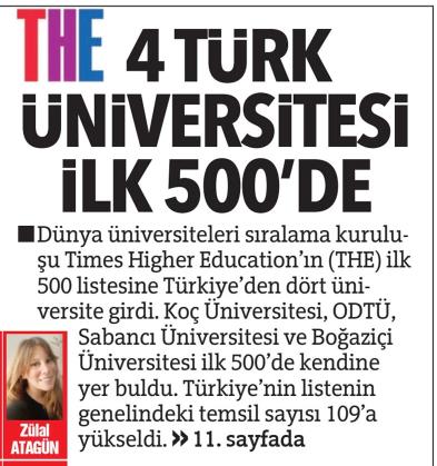4 TÜRK ÜNİVERSİTESİ İLK 500'DE