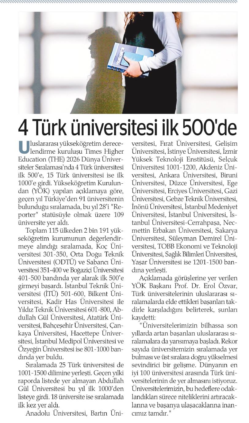 4 TÜRK ÜNİVERSİTESİ İLK 500'DE