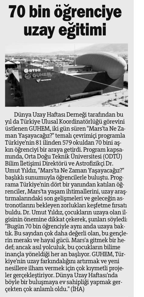 70 BİN ÖĞRENCİYE UZAY EĞİTİMİ
