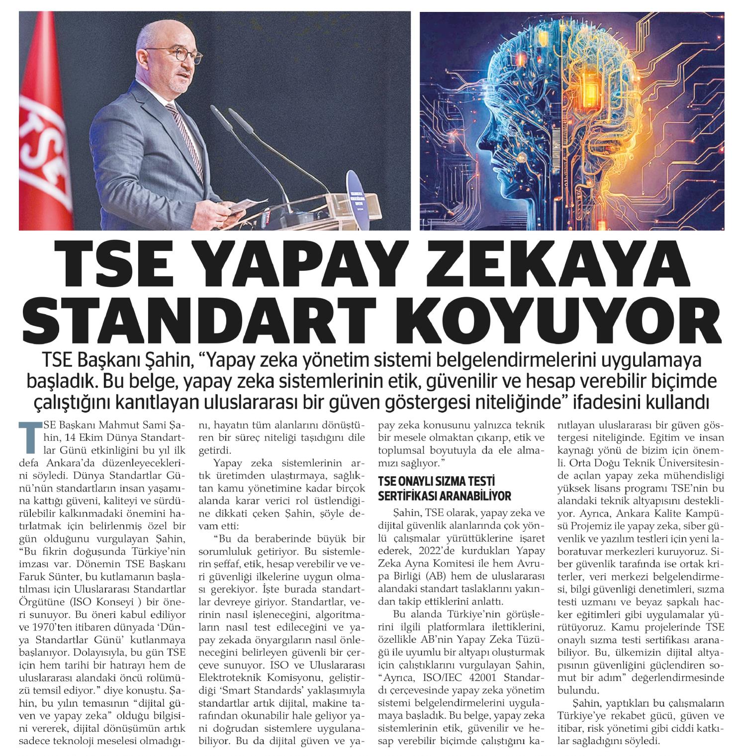 TSE YAPAY ZEKAYA STANDART KOYUYOR