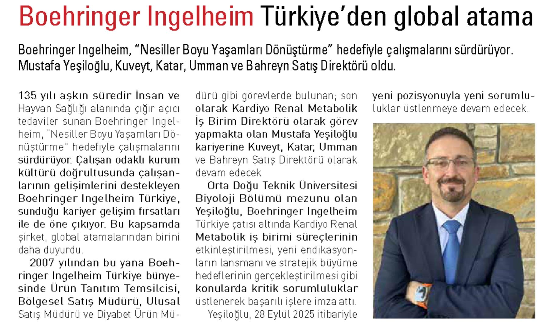 BOEHRINGER INGELHEIM TÜRKİYE'DEN GLOBAL ATAMA