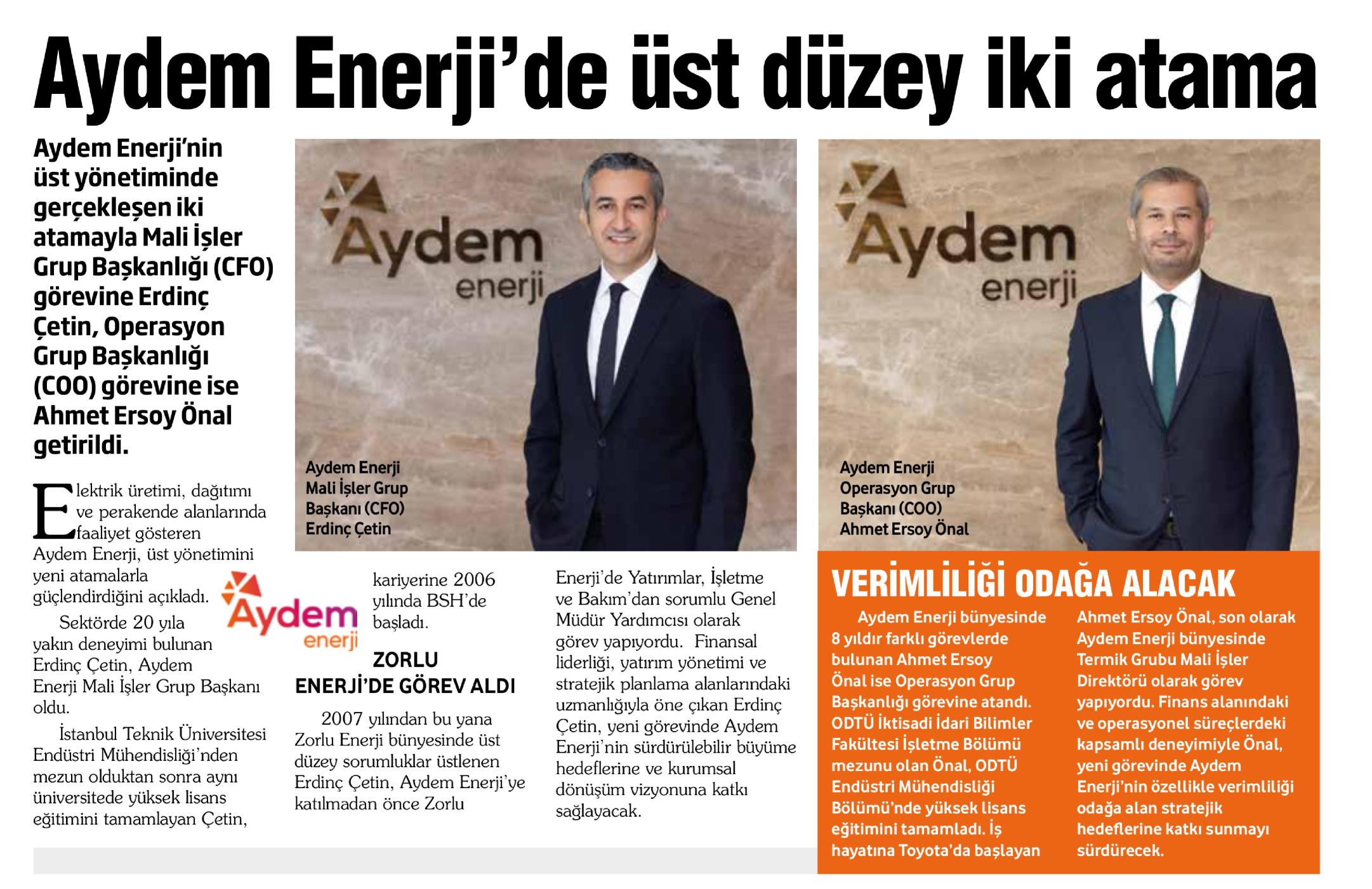 AYDEM ENERJİ'DE ÜST DÜZEY İKİ ATAMA