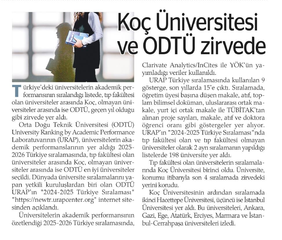 KOÇ ÜNİVERSİTESİ VE ODTÜ ZİRVEDE