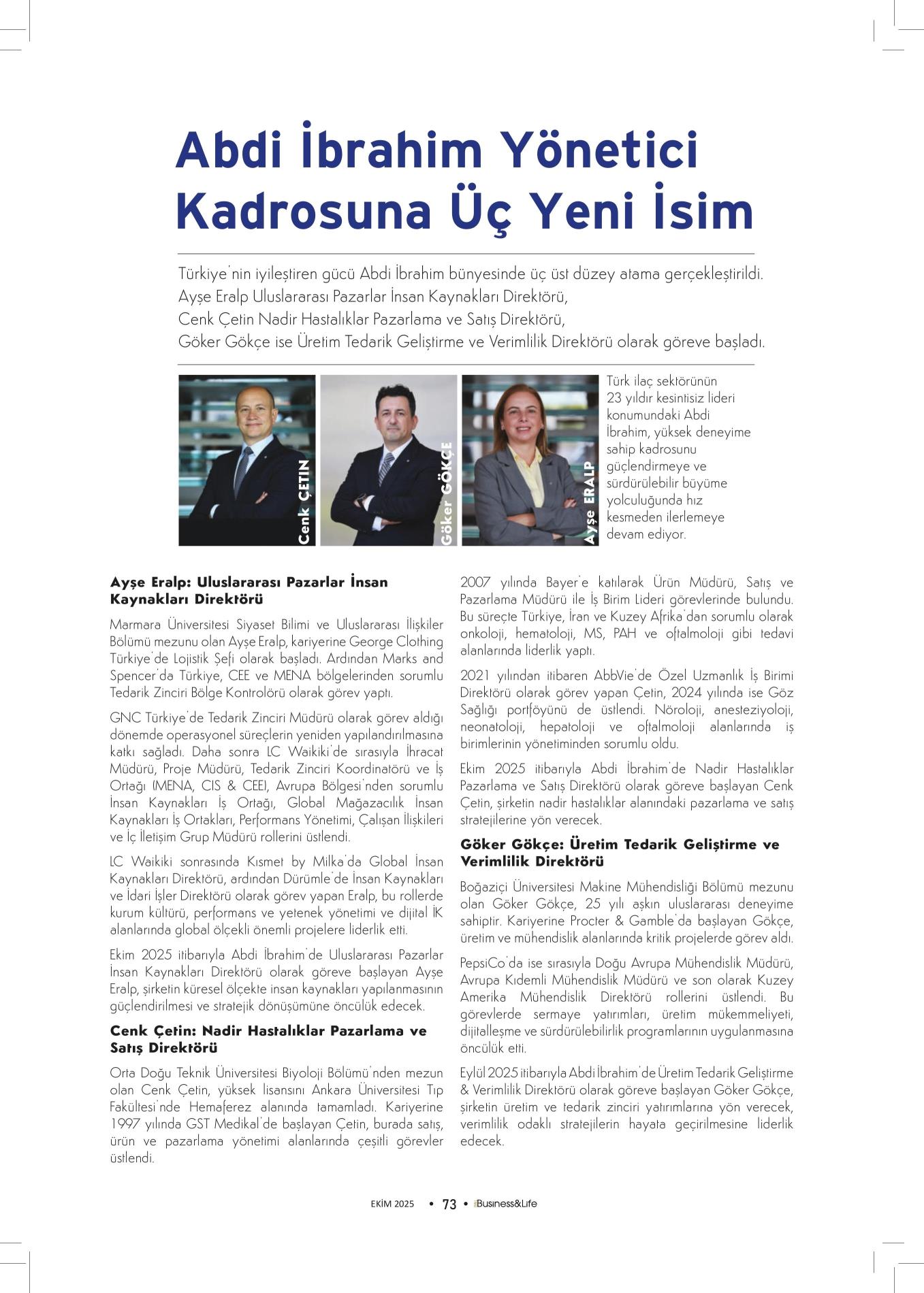 ABDİ İBRAHİM YÖNETİCİ KADROSUNA ÜÇ YENİ İSİM