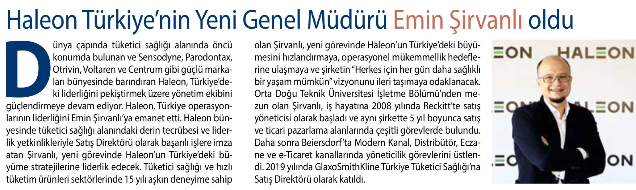 HALEON TÜRKİYE'NİN YENİ GENEL MÜDÜRÜ EMİN ŞİRVANLI OLDU
