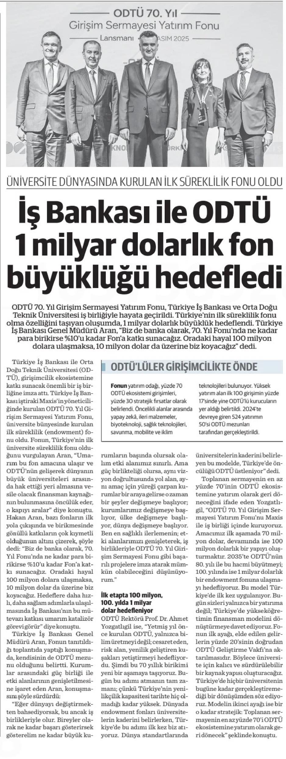 İŞ BANKASI İLE ODTÜ 1 MİLYAR DOLARLIK FON BÜYÜKLÜĞÜ HEDEFLEDİ