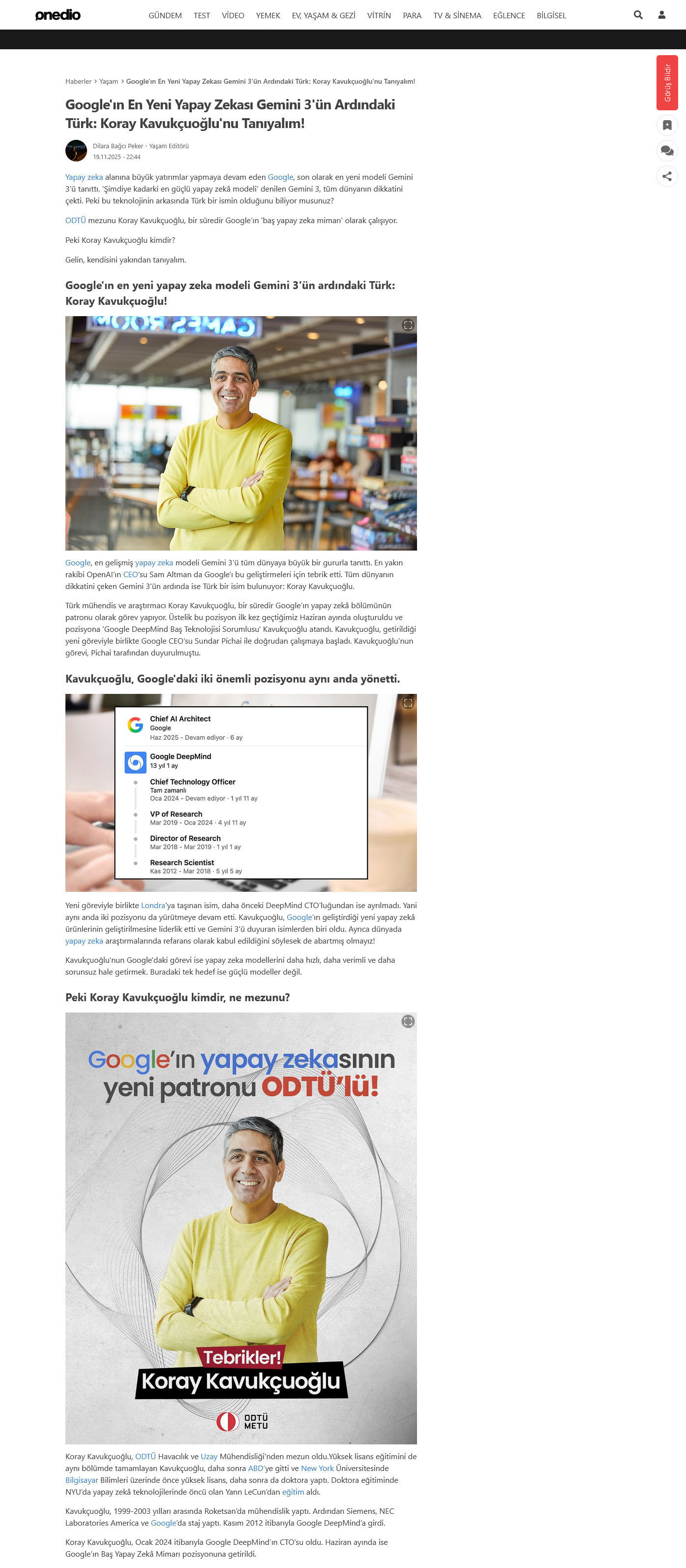GOOGLE'IN EN YENİ YAPAY ZEKASI GEMINI 3'ÜN ARDINDAKİ TÜRK: KORAY KAVUKÇUOĞLU'NU TANIYALIM