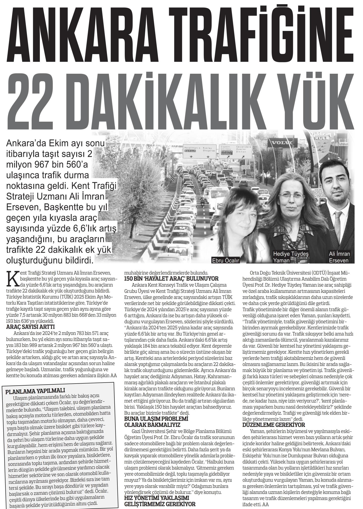 ANKARA TRAFİĞİNE 22 DAKİKALIK YÜK