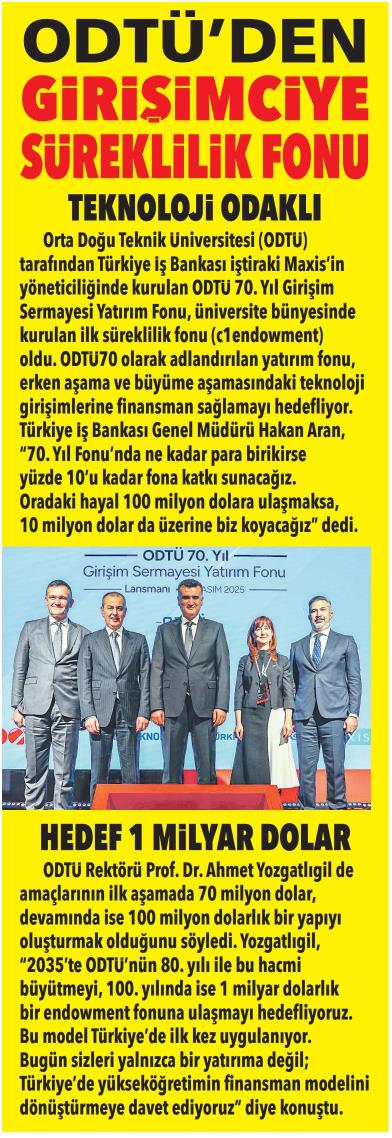 ODTÜ'DEN GİRİŞİMCİYE SÜREKLİLİK FONU