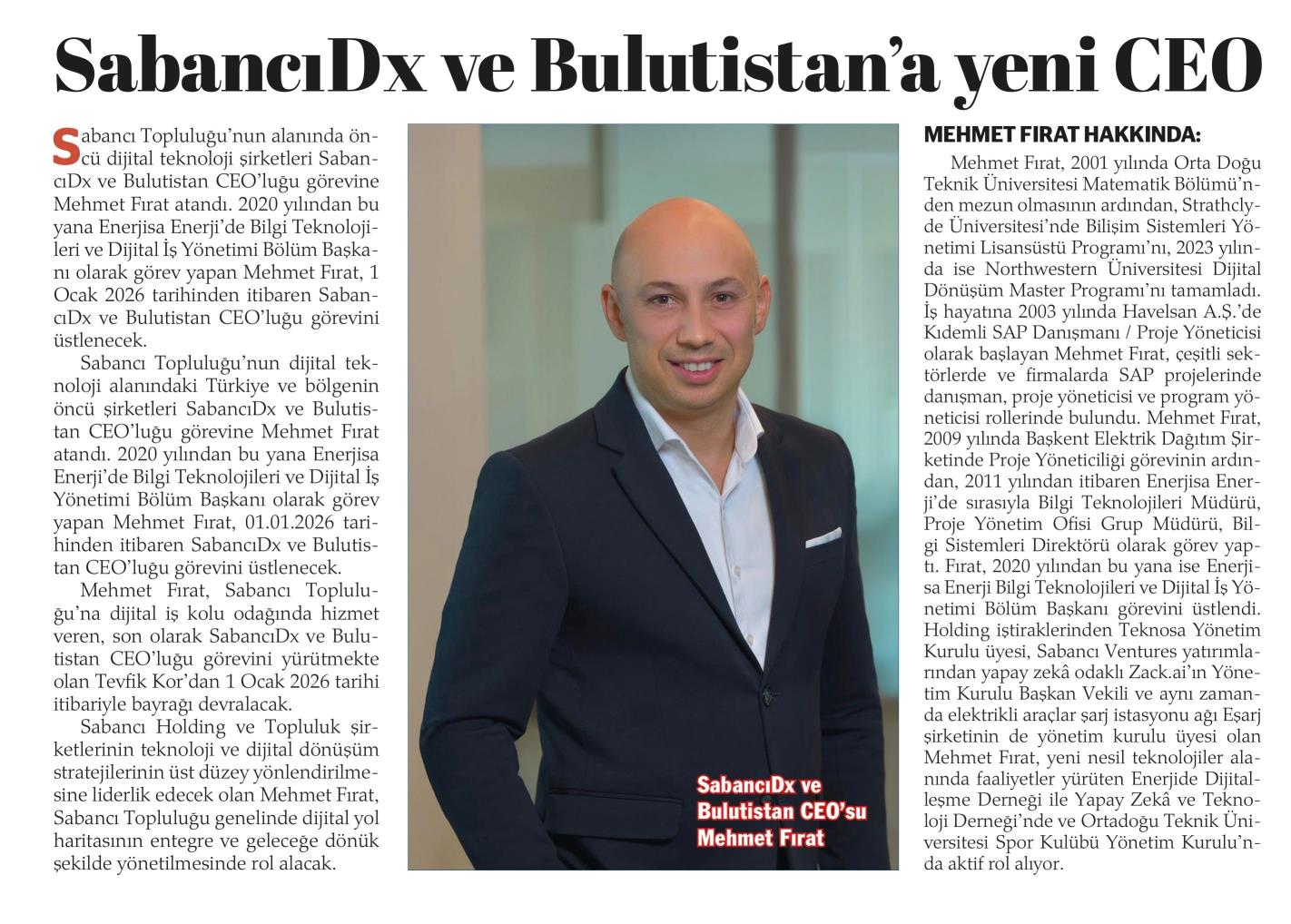 SABANCIDX VE BULUTİSTAN'A YENİ CEO