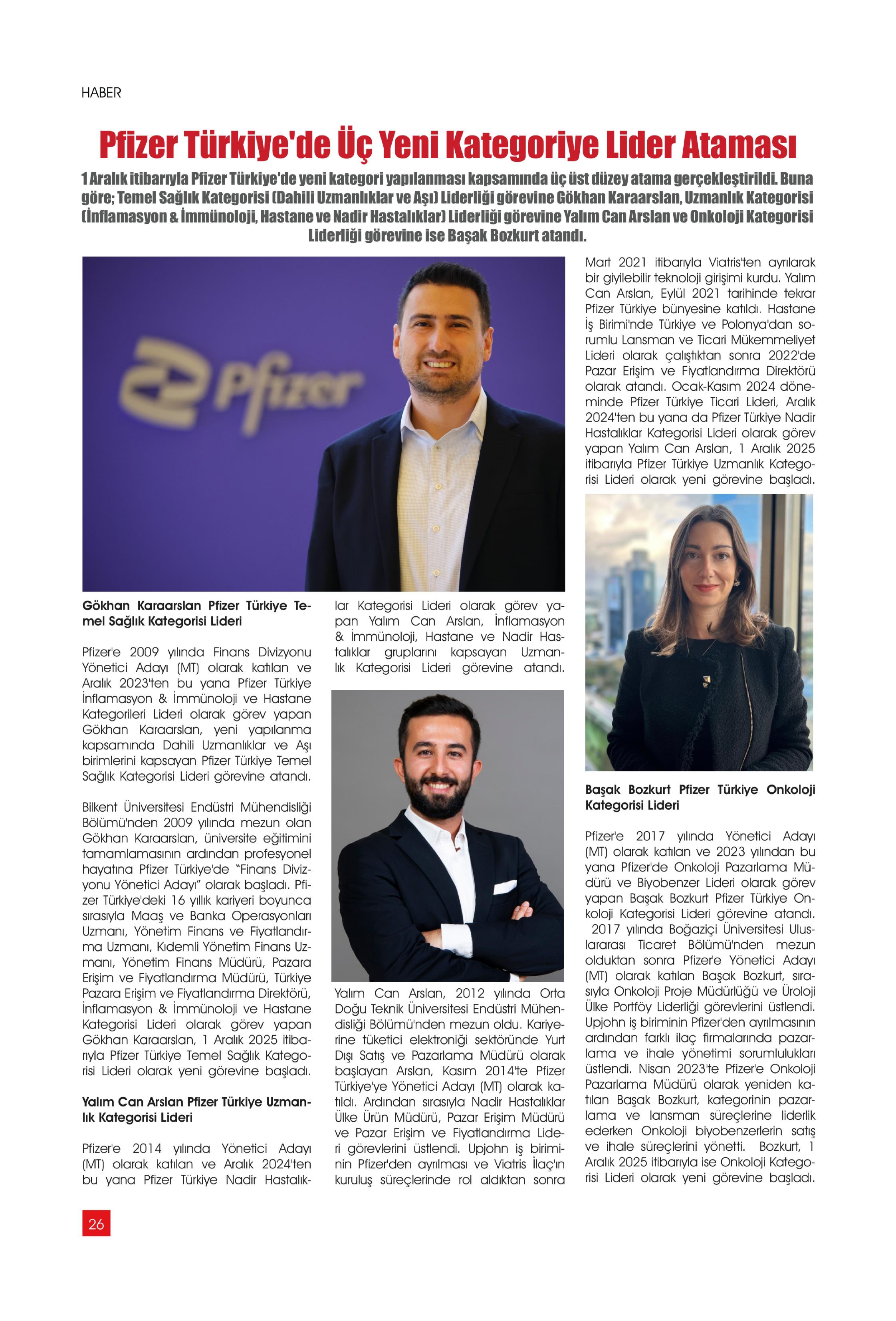 PFIZER TÜRKİYE'DE ÜÇ YENİ KATEGORİYE LİDER ATAMASI