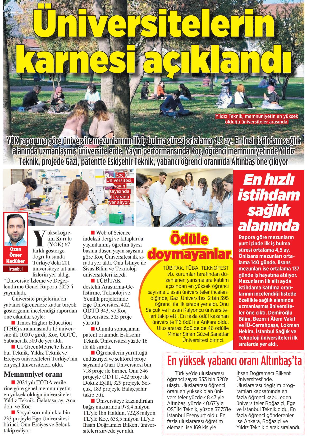 ÜNİVERSİTELERİN KARNESİ AÇIKLANDI
