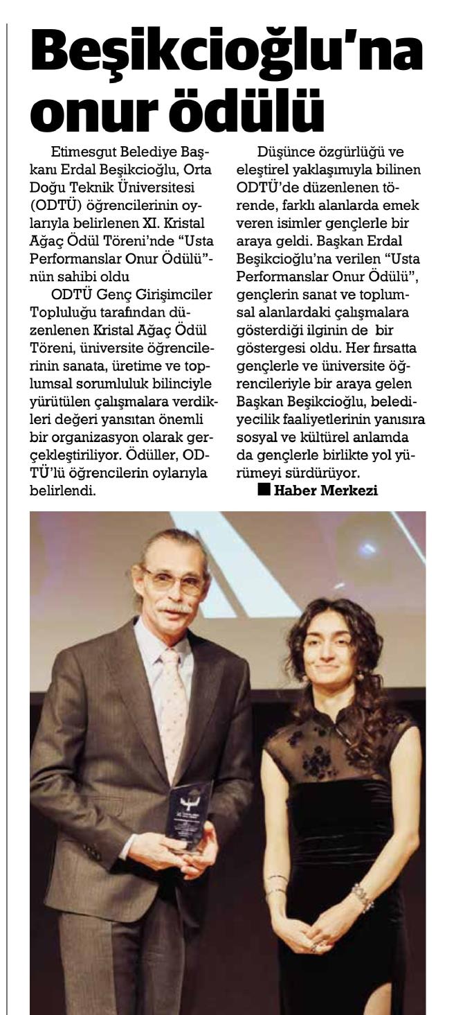 BEŞİKCİOĞLU'NA ONUR ÖDÜLÜ