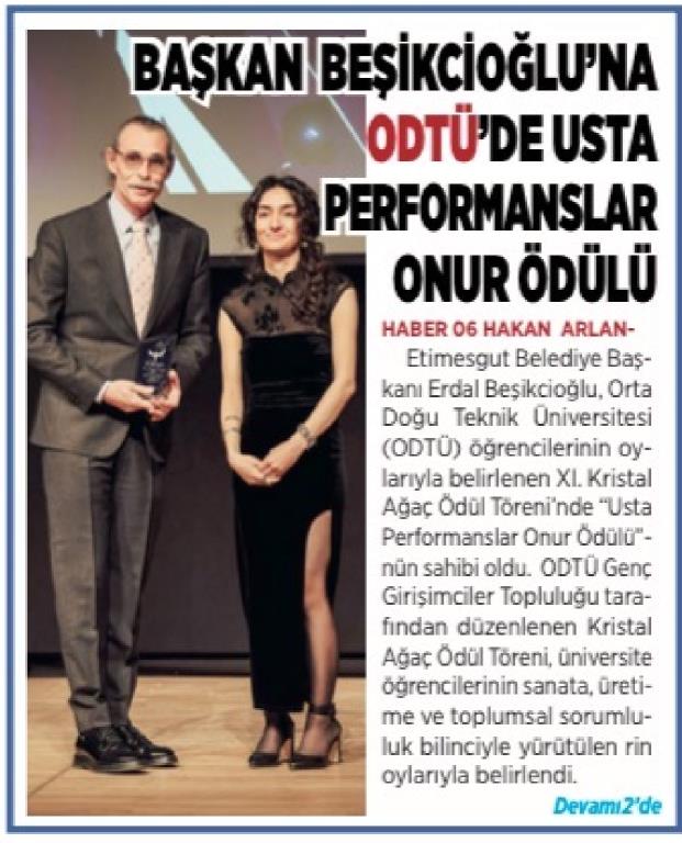 BAŞKAN BEŞİKCİOĞLU'NA ODTÜ'DE USTA PERFORMANSLAR ONUR ÖDÜLÜ