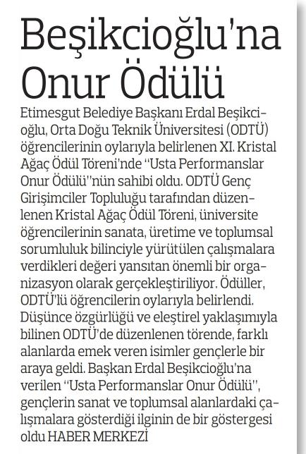BEŞİKCİOĞLU'NA ONUR ÖDÜLÜ
