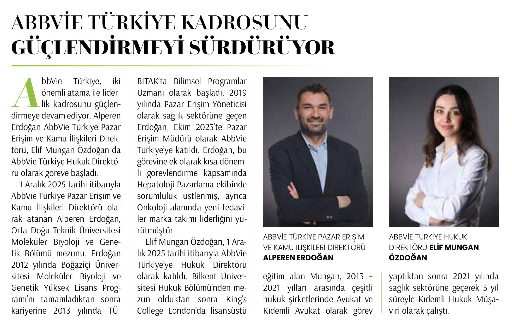 ABBVIE TÜRKİYE KADROSUNU GÜÇLENDİRMEYİ SÜRDÜRÜYOR