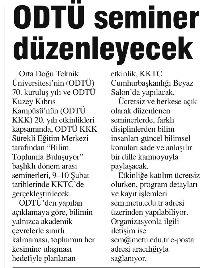 ODTÜ SEMİNER DÜZENLEYECEK