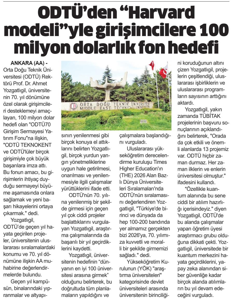 ODTÜ'DEN "HARVARD MODELİ"YLE GİRİŞİMCİLERE 100 MİLYON DOLARLIK FON HEDEFİ [Devam - 1]