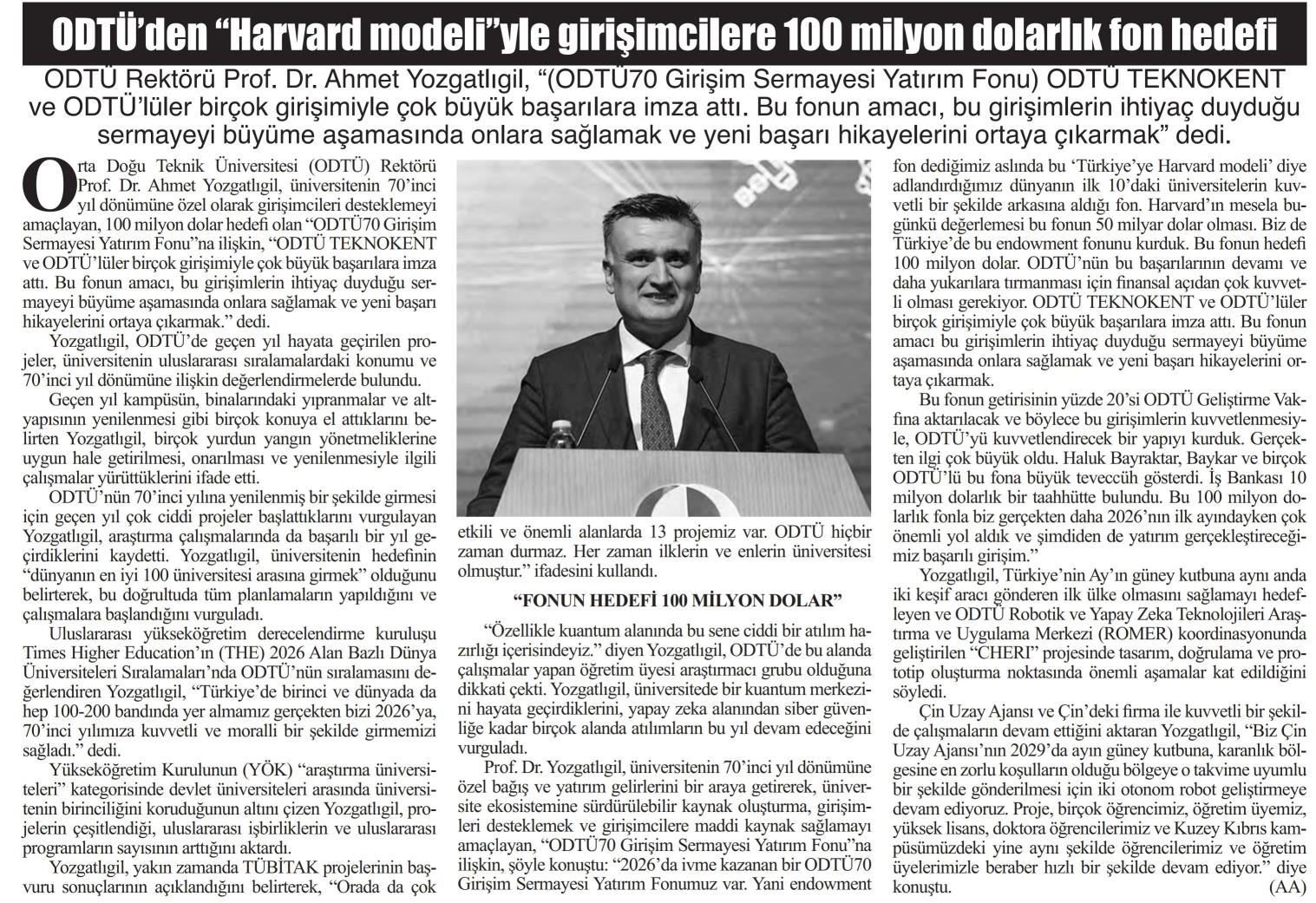 ODTÜ'DEN "HARVARD MODELİ"YLE GİRİŞİMCİLERE 100 MİLYON DOLARLIK FON HEDEFİ [Devam - 1]