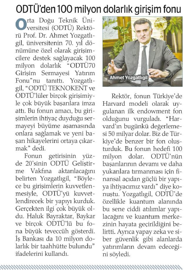 ODTÜ'DEN 100 MİLYON DOLARLIK GİRİŞİM FONU